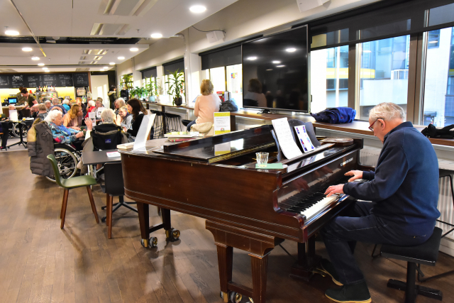 De high tea met verschillende lekkere hapjes werd verzorgd door het Forum-Café. Tijdens de High Tea werd er ook volop meegezongen met oud-Hollandse meezingliedjes die live op de vleugel werden gespeeld door Jacques van Oosterom.