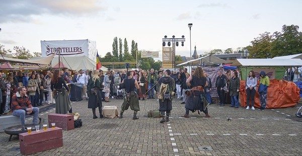 Historisch Zoetermeer trok weer vele bezoekers naar de Markt die zich voor even terug in de tijd waanden. Even rondkijken in het tentenkamp van rondreizende ridders, echt ‘Geuzenvoer’ eten bij een stalletje, of misschien wel traditioneel brood dat boven een barbecue aan een stok wordt gebakken. Op het grote middenterrein werden verschillende voorstellingen gehouden, zoals de vogelshow ‘De Raaf van Rockevheen’, het riddertoernooi en de avondshow ‘De Slag bij Zoetermeer’.