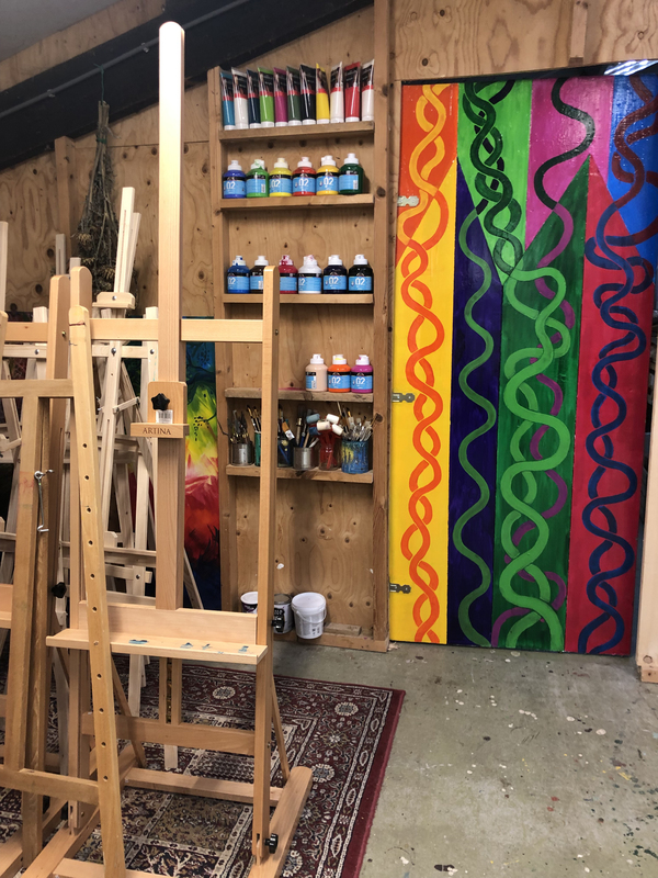 “Een atelier waar dus gesmeten kan worden met verf en waar we niet meer na elke workshop alles spik en span hoeven achter te laten voor de volgende groep (yoga op de grond bijvoorbeeld)”, aldus Marion Moerland, die vanaf het begin zich heeft ingezet voor dit atelier. Samen met andere enthousiaste vrijwilligers is de schuur achter omgetoverd in een ruimte waar ze nu nog meer creatief kunnen verbinden en het artistieke in een ieder kunnen stimuleren.