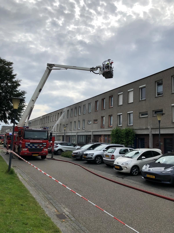 De brandweer is met vier brandweerwagens aanwezig om de brand te bestrijden. Ook een hoogwerker werd opgeroepen om van bovenaf de brand te bestrijden en het dak te controleren. Het hele huizenblok werd uit voorzorg ontruimd en ook de straat werd afgezet om het aanwezige publiek op afstand te houden.