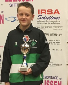 De Karate Cup Sittard is kwalitatief hoogstaand internationaal toernooi, op het gebied van deelnemers, niveau en prijzen en inmiddels een begrip voor vele karateka's in binnen- en buitenland. In de categorie Cadetten jongens -57kg, stapte Glenn met een behoorlijke dosis zelfvertrouwen, de mat op. Hij was in vorm, scherp en gefocust. De scorende technieken waar Glenn de afgelopen periode hard op heeft getraind, wist hij ijzersterk in zijn wedstrijden toe te passen. In de halve finale moest hij helaas een nipt verlies incasseren maar dit maakte hem niet minder gemotiveerd om voor het brons te gaan. Glenn draaide een geweldige bronzen finale en dus een mooie podiumplek als welverdiende beloning! Glenn komt uit voor Unity’99 uit Rotterdam