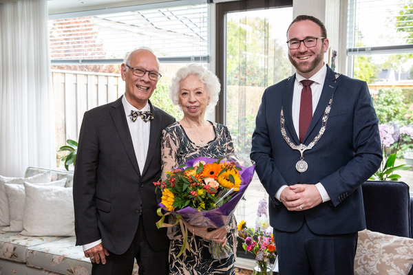 Wethouder Bouke Velzen bracht maandag 16 oktober als locoburgemeester een bezoek aan het 60-jarig bruidspaar Stout-Claussen. Het bruidspaar kreeg de hartelijke felicitaties van de locoburgemeester, die namens de gemeente een mooi boeket overhandigde.