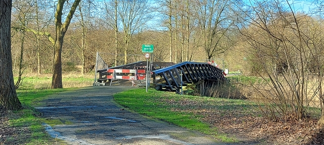 In de aangegeven weken was de situatie echter nog onveranderd. Er werd inmiddels wel gewerkt aan de bruggen en op 11 juli vertelden twee werknemers, dat vermoedelijk eind juli de toplaag aangebracht gaat worden en de bruggen weer open kunnen. Inmiddels zijn de bruggen open, maar de laatste afwerking, het aanbrengen van de 'slijtlaag' moet nog gebeuren. Wanneer dat gedaan is, zal het 'omlopen' voor wandelaars voor lange tijd, verleden tijd zijn.